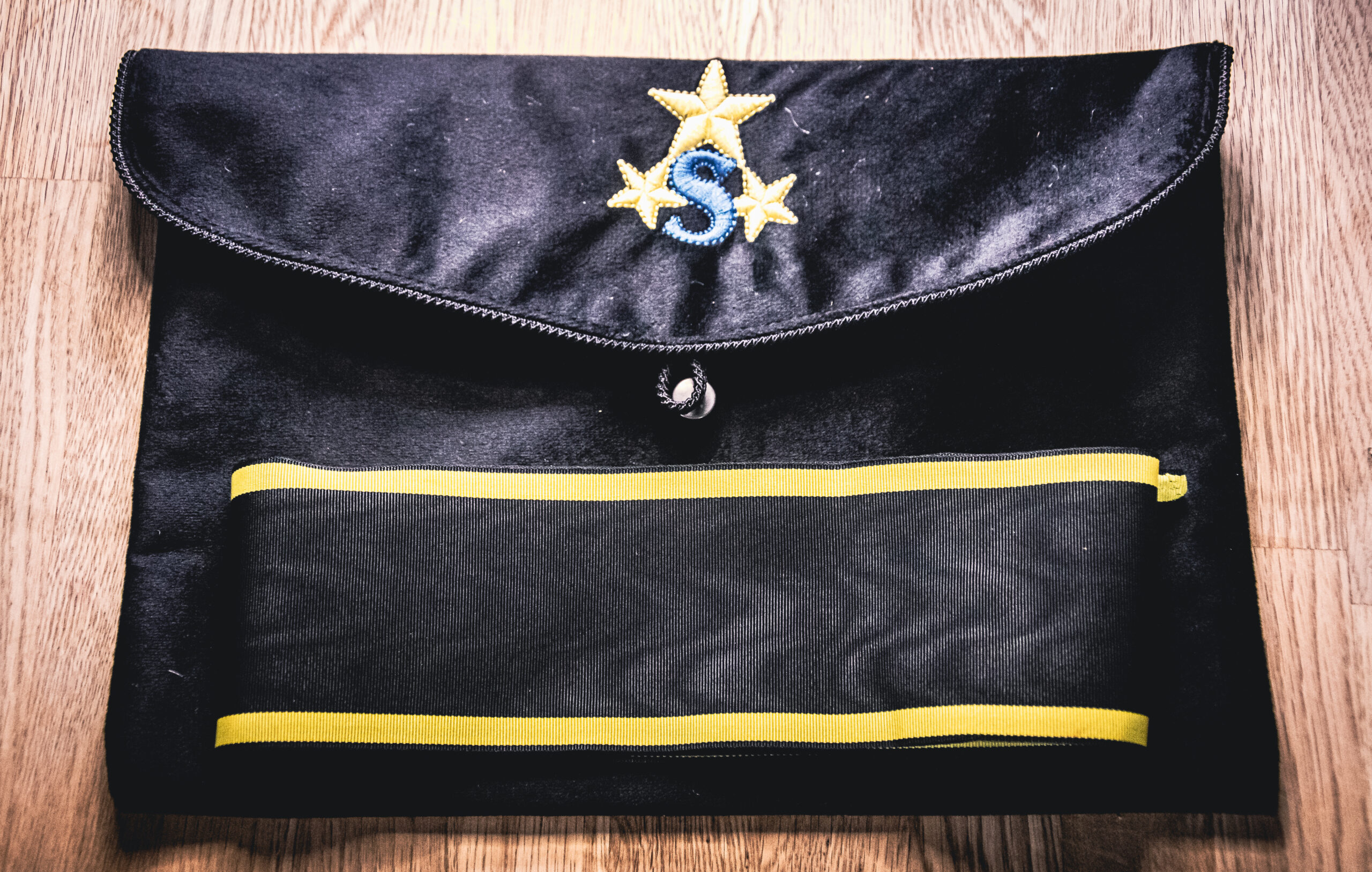 En exklusiv regaliaväska framtagen för ordensbrodern som vill bära sin regalia med stil och omtanke. Väskan är tillverkad i elegant svart sammet, och pryds av Sirius-Ordens emblem vackert broderat i guld och blått, vilket ger ett sofistikerat och representativt uttryck.