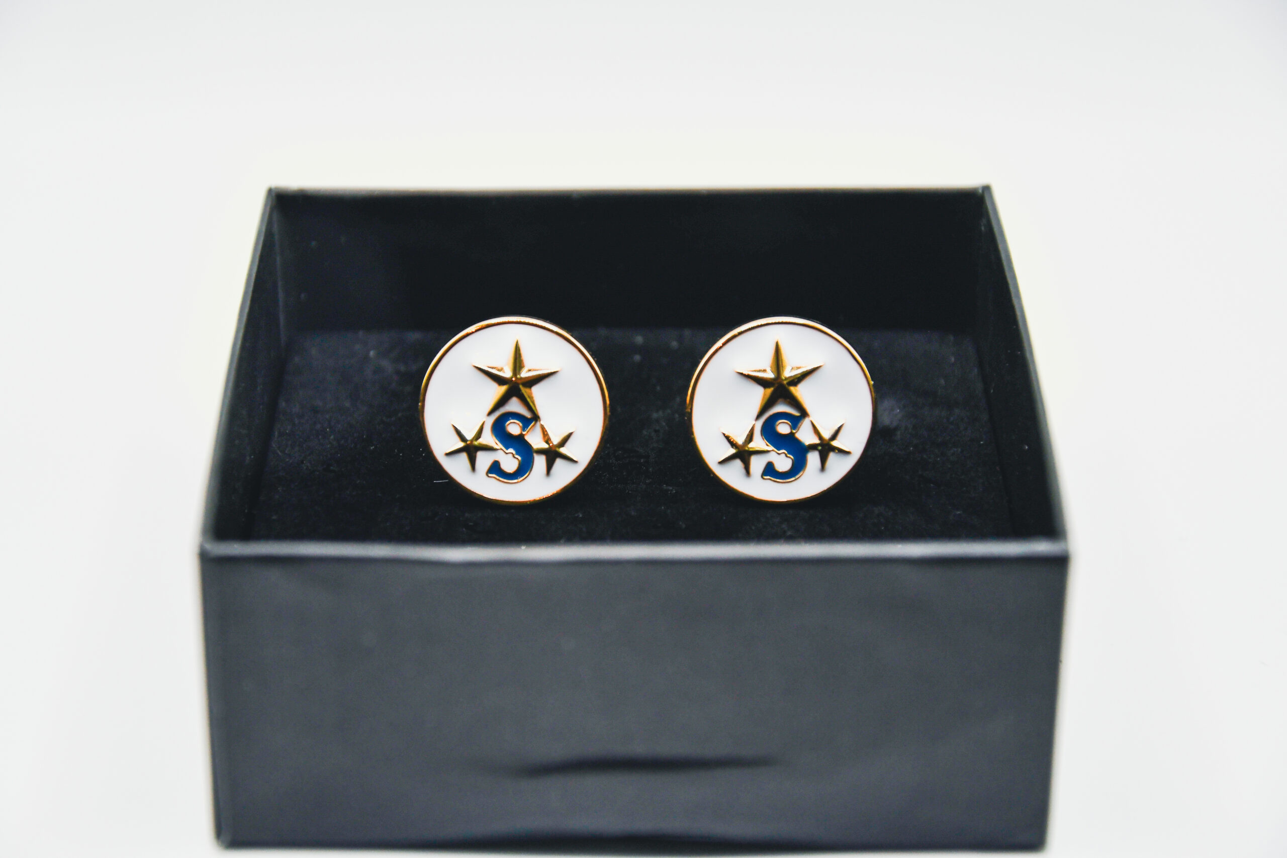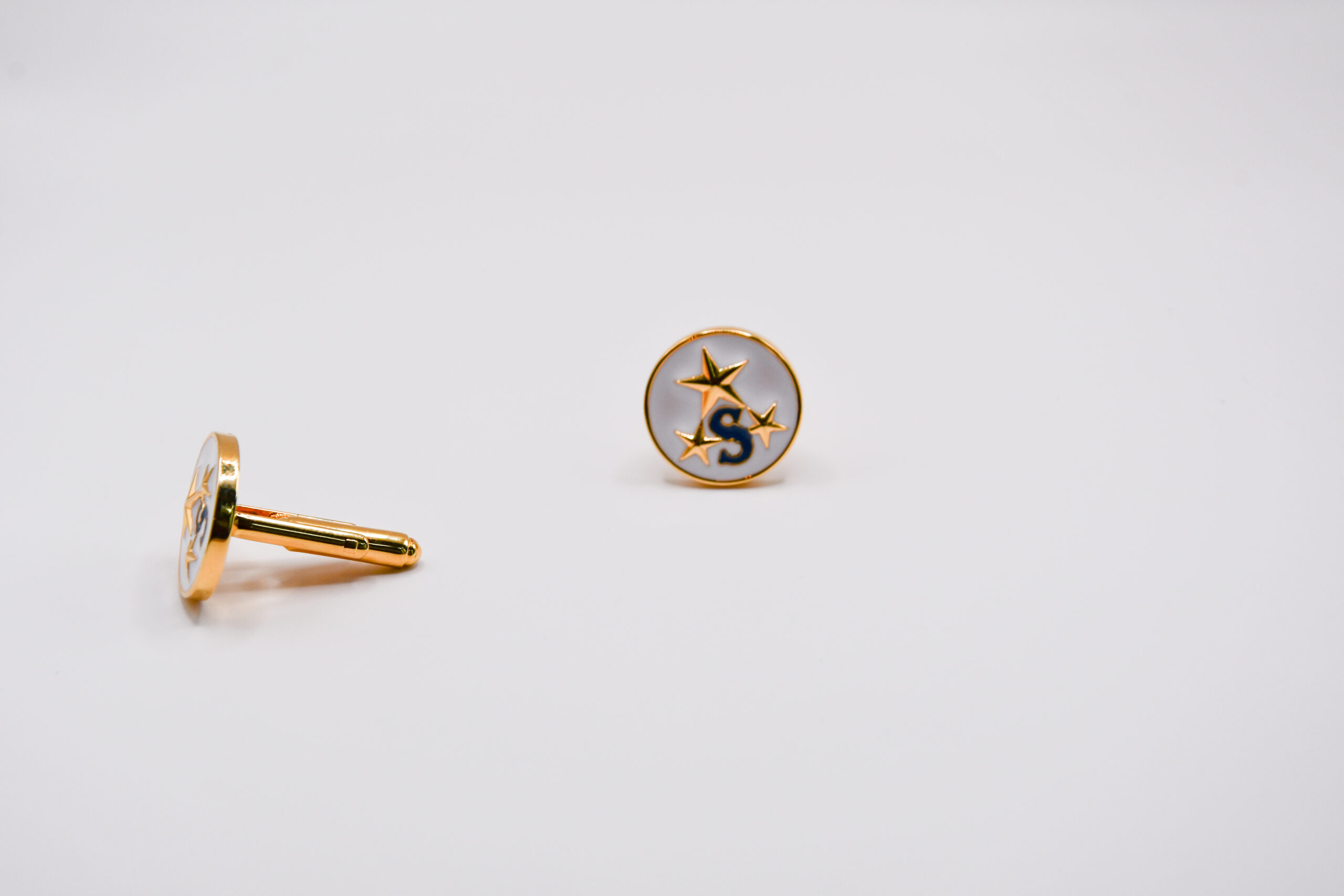 Dessa manschettknappar är tänkt att vara ett tidlöst uttryck för diskret elegans och ordensstolthet. De guldfärgade manschettknapparna är omsorgsfullt framtagna för att förena tradition med modern finess, och passar fint på både frack och kostym. Mitt på varje knapp vilar Sirius-Ordens symbol, vackert inramad mot en vit, glansfull bakgrund som framhäver emblemet med värdig enkelhet.